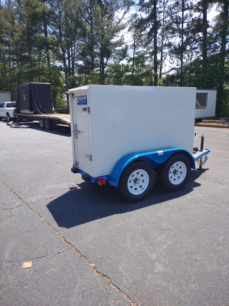 Introducing the 3 ft. x 7 ft. refrigerated trailer, the perfect solution for transporting refrigerated goods across the United States! All Polar Temp trailers can be used as both cooler and freezer trailers. Our high quality yet economical trailers use standard 115 V household outlet.